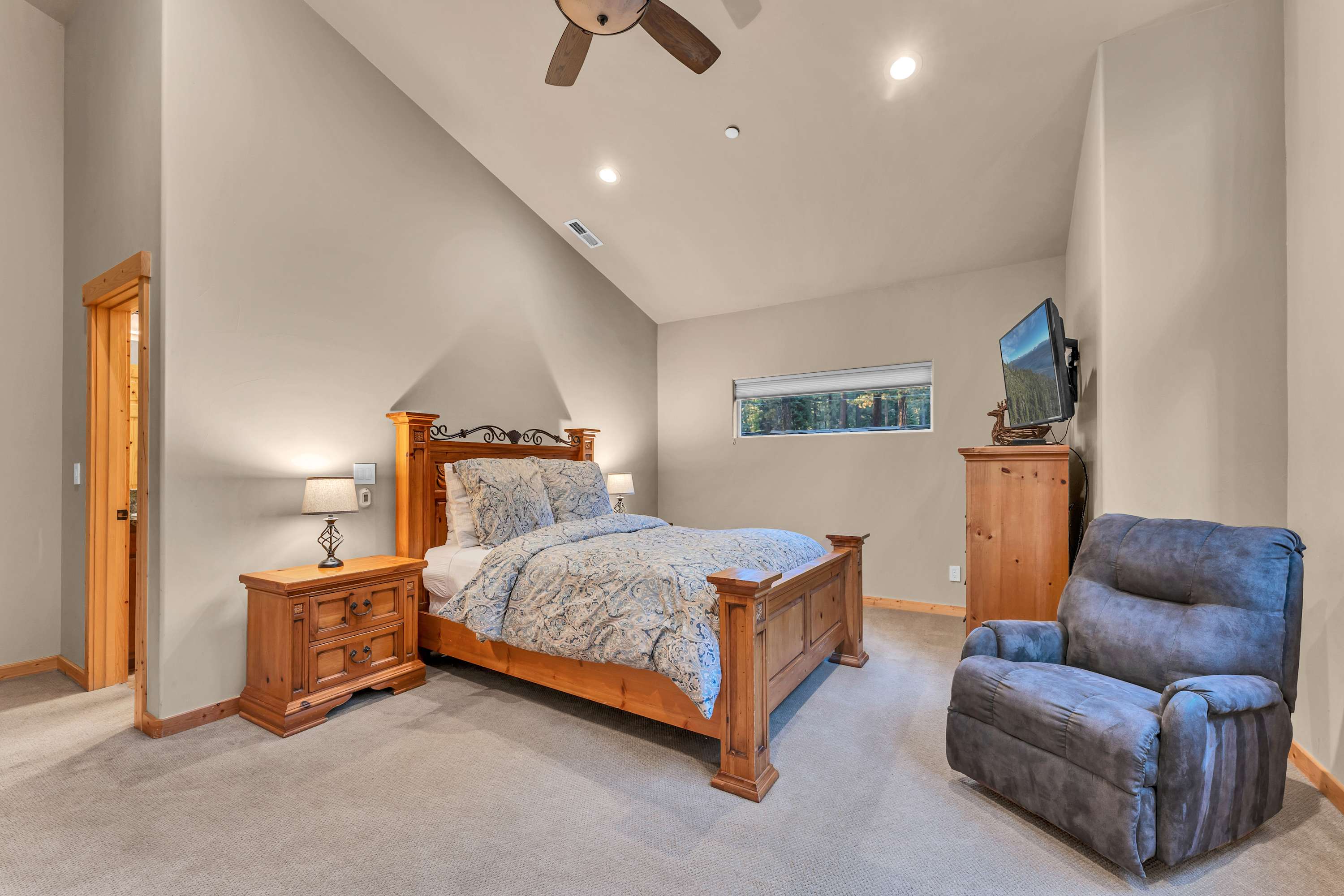 Escape to this Kings Beach vacation rental, just half a mile from Lake Tahoe’s beaches. After skiing or hiking, relax in the private saltwater hot tub or enjoy the fresh mountain air on the 2 decks. The fenced backyard provides privacy, while windows fill the living room with natural light and wooded views. Cozy up by the gas fireplace or unwind in the bonus room with a wet bar. With 5 bedrooms and a well-equipped kitchen, this home is the ideal base for your Tahoe retreat.