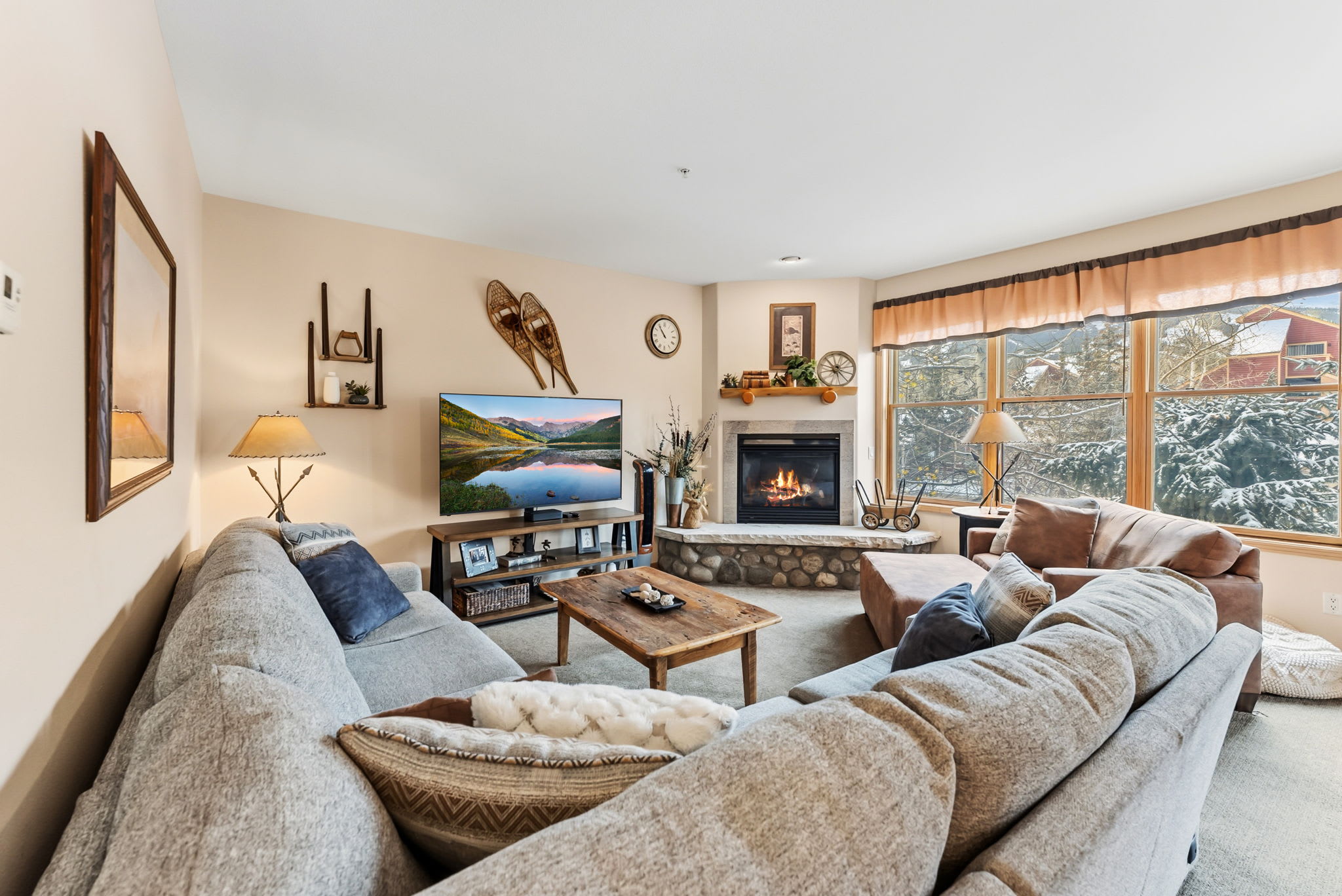 This second floor, elevator-accessed condo unit is 1200 sq ft and has a king bed in the master bedroom, two twin beds and a twin-over-twin bunk bed in the second bedroom (total of 4 twin beds), and a pullout queen sofa bed. Perfect for groups with kids or for close-knit gatherings! There is seating for ten in the dining room with lots of natural lighting. You will love the fully-stocked modern kitchen and the beautiful granite countertops throughout the unit (though you may find that you prefer to experience the unique dining experiences available right at your doorstep with how close to main street you'll be!). Enjoy spectacular mountain views from the private outdoor hot tub on the deck. For your convenience, our unit includes a full-size washer and dryer, free high speed Internet (wired and Wi-Fi), gas fireplace, hair dryer, iron, ironing board and a bike storage closet on the first floor. Bring your bike and go on a ride without worry! Please note that, like most homes in Breckenridge, we do not have A/C. Breckenridge STR License Number:00000 43497