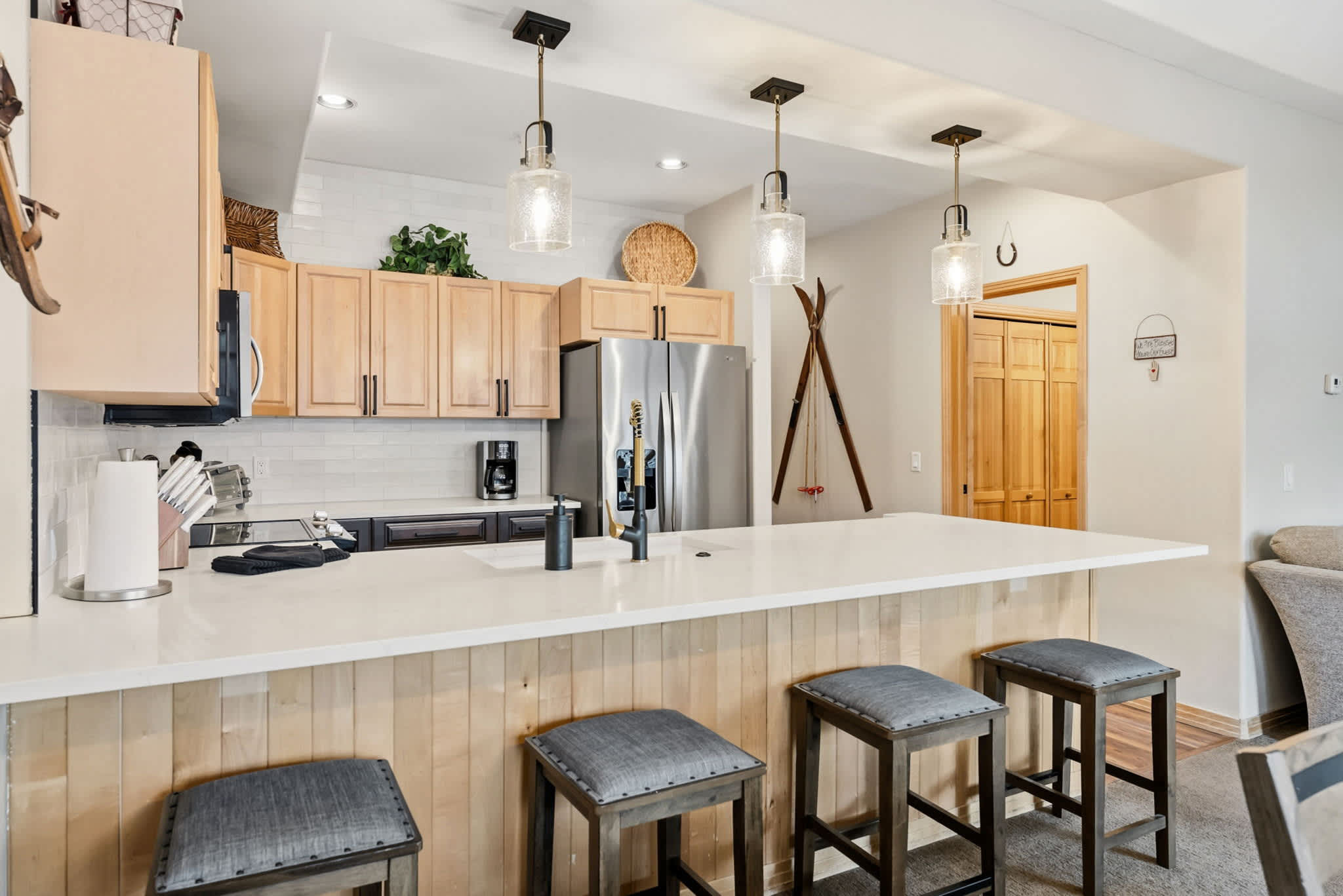 The perfect location for a Breckenridge immersion for groups of up to 8 guests! With an unbeatable location just a short walk away from main street and downtown Breck, you and your guests will be thrilled with the convenience of being so close to all there is to offer in town. Great for close-knit groups and families, this 2BD condo boasts a beautiful kitchen area, plenty of dining and living room space, and a hot tub on deck. After a day of adventuring, this is the place you want to be!